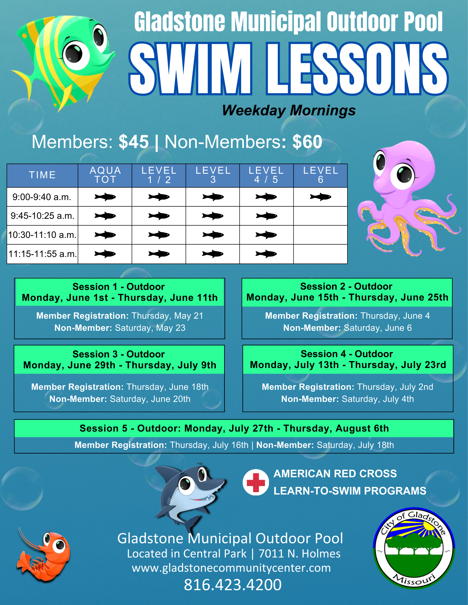 | Session Dates: March 7th - May 2nd **No Class on Saturday, March 28th due to Underwater Easter Egg Hunt | ||||||