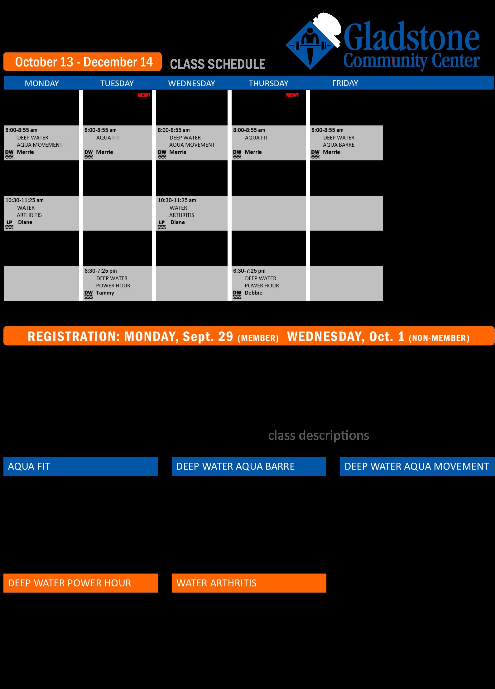 | Water Aerobics | October 13, 2025 - December 21, 2025 |