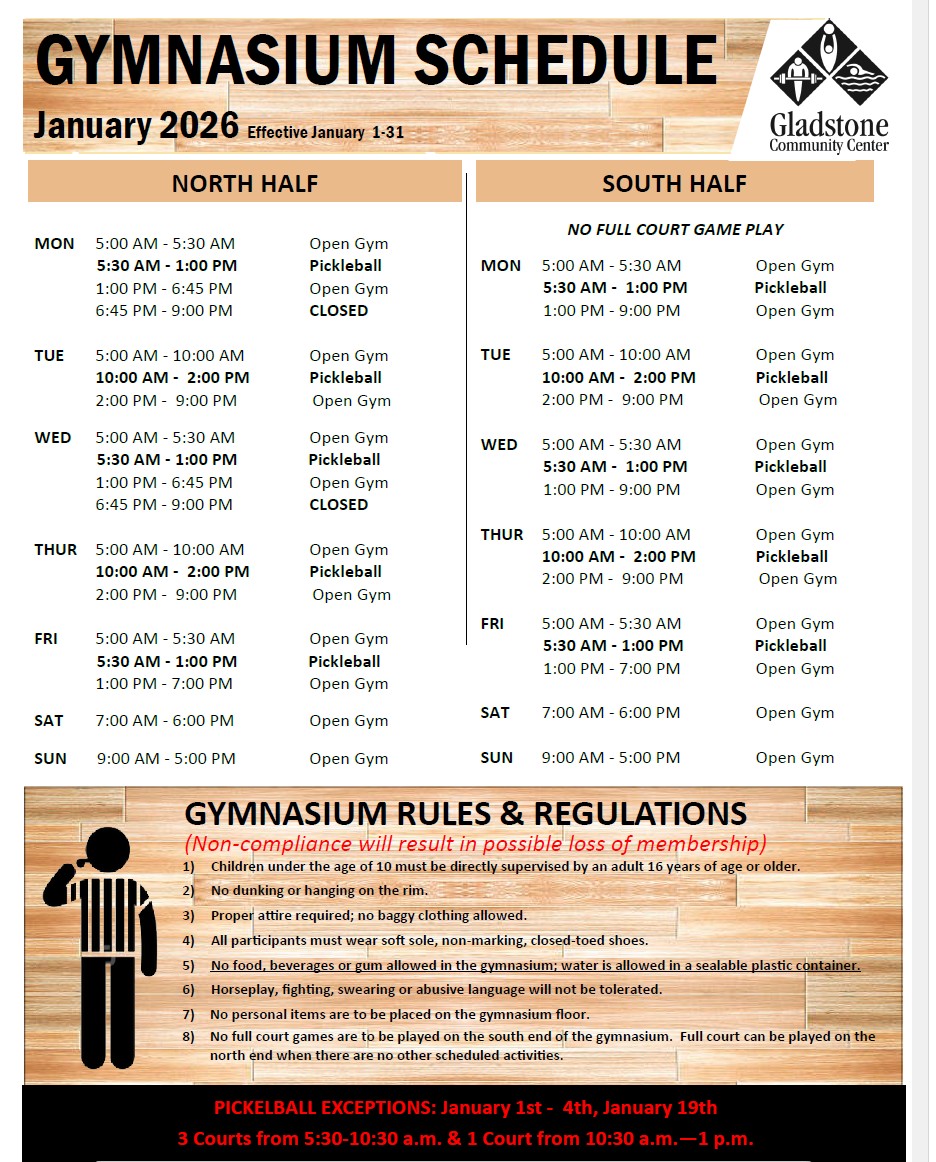| Gymnasium | January 1, 2026 - January 31, 2026 |
