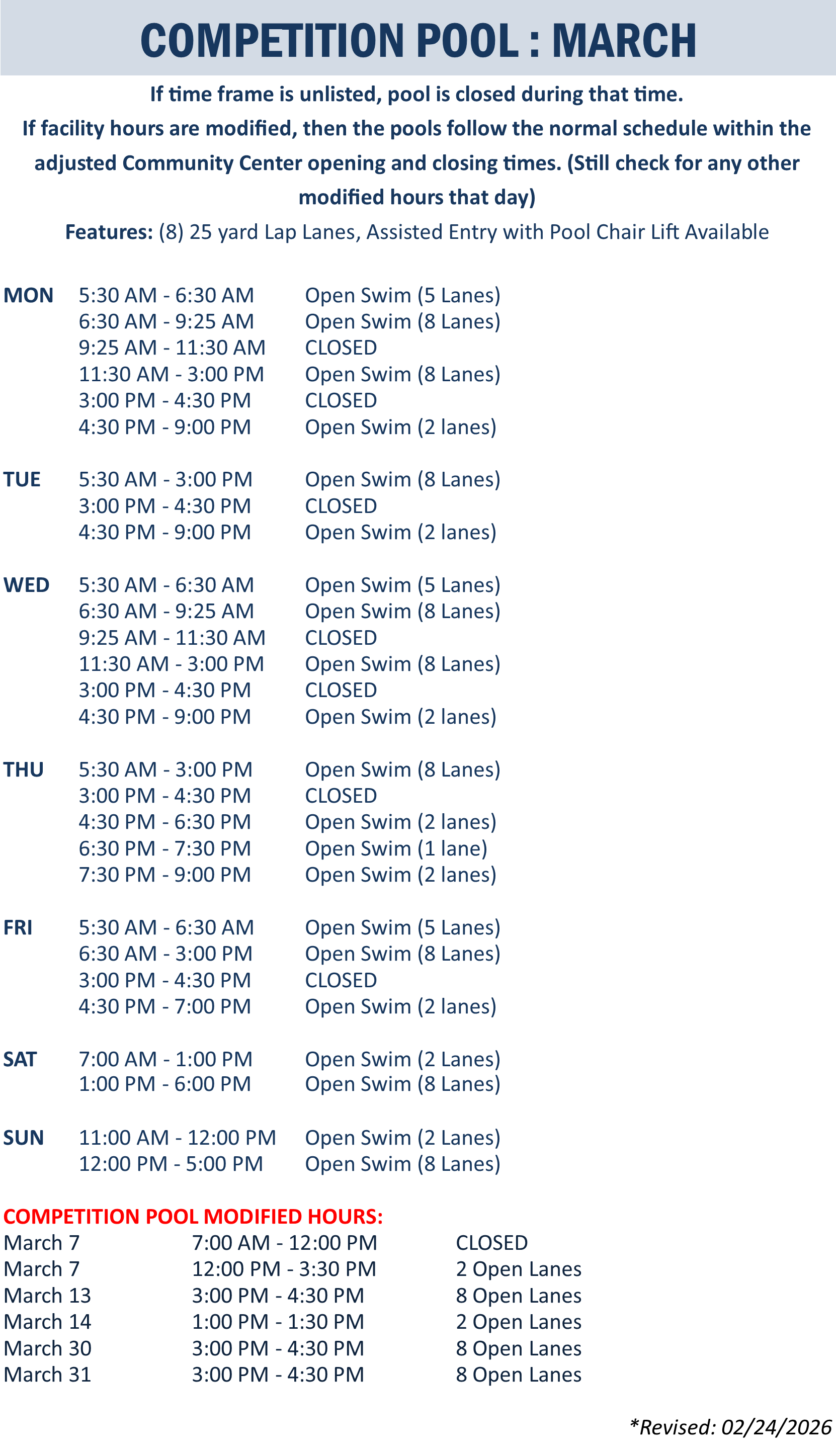 | Leisure Pool | March 1, 2026 - March 31, 2026 |