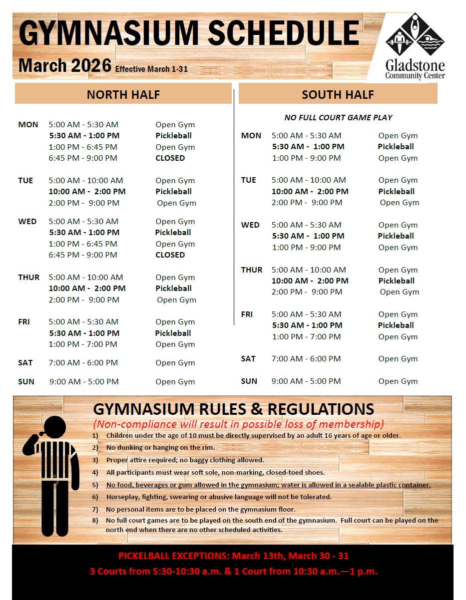 | Gymnasium | March 1, 2026 - March 31, 2026 |