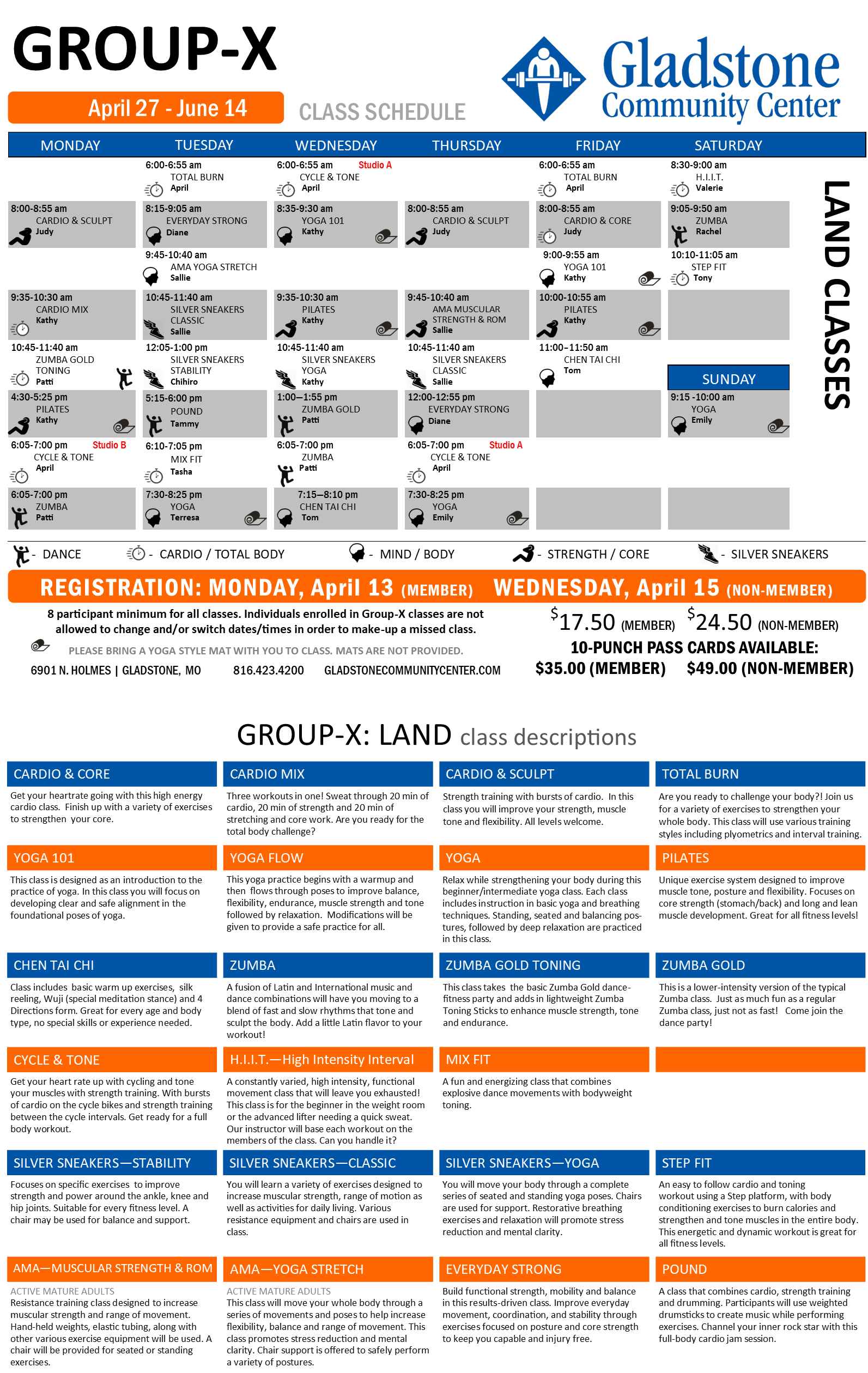 | Water Aerobics | April 27, 2026 - June 14, 2026 |